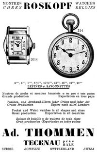 Thommen AG Tecknau wurde von Adolf Thommen in dem Ort Tecknau zwischen Rheinfelden und Olten in der Schweiz gegründet. Die Firma wurde in 1838 umbenannt in Basis Watch Co. und von Max Thommen, geboren in 1924, weitergeführt.