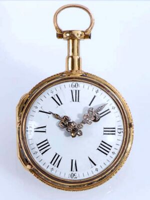 Im 18. Jahrhundert gefertigte Taschenuhren sind dann schon oft Schmuckstücke, die mittels Châtelaine repräsentativ offen an der Kleidung oder am Gürtel getragen wurden.