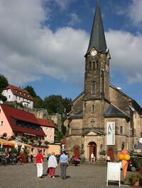 | + | [[Datei:Kirche in Wehlen mit Turmuhr von C.H.Wolf.jpg|200px|mini|Kirche in Wehlen mit Turmuhr von C.H.Wolf.]] | ||