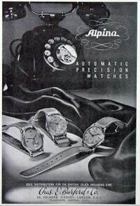 | − | Die Hauptadresse blieb jedoch Leamington Spa. Direct dem Zweiten Weltkrieg importierte das Unternehmen [[Alpina/de|Alpina-Uhren in Großbritannien]]. Leider ist nicht bekannt, wie lange der Import von Alpina andauerte. Am [[21. Juli]] [[1945/de|1945]] ließ Burford die Marken "Redoubt" und "Spearhead" eintragen, vier Tage später die Marken "Resolute" und "Resolute Watches". Am [[14. August]] [[1945/de|1945]] wurde die Marke Griffon und am [[22. August]] die Marken Kingfisher und Waterguard eingetragen. Brighouse wird hier noch als Siedlungsort angegeben. | + | Die Hauptadresse blieb jedoch Leamington Spa. Direct dem Zweiten Weltkrieg importierte das Unternehmen [[Alpina/de|Alpina-Uhren in Großbritannien und Irland]]. Leider ist nicht bekannt, wie lange der Import von Alpina andauerte. Am [[21. Juli]] [[1945/de|1945]] ließ Burford die Marken "Redoubt" und "Spearhead" eintragen, vier Tage später die Marken "Resolute" und "Resolute Watches". Am [[14. August]] [[1945/de|1945]] wurde die Marke Griffon und am [[22. August]] die Marken "Kingfisher" und "Waterguard" eingetragen. Brighouse wird hier noch als Siedlungsort angegeben. |