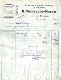 [[Datei:Rechnung H. Chauvelot-Mayer & Fils für Horlogerie Bontemps à Parthenay.jpg|200px|mini|H. Chauvelot-Mayer & Fils für Horlogerie [[Bontemps à Parthenay]]]]