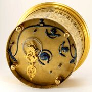 | 14:55, 21. Okt. 2025 | Julien Le Roy, Kutschenuhr mit Viertelstunden-Stundenrepetition, Wecker, Monats- und Datumsanzeige ca. 1760 (22).jpg (Datei) | 247 KB | Andriessen | Julien Le Roy, Große Pariser Kutschenuhr mit Viertelstunden-/Stundenrepetition, Wecker, Monats- und Datumsanzeige im originalen Ledertransportgehäuse, ca. 1760 {{Bildrechte U|dem Auktionshaus Auktionen Dr. H. Crott}} {{Category Picture gallery movements Le Roy, Julien (1)}} Transportgehäuse - Silber · Lederbelag · aufgelegtes · durchbrochen gearbeitetes Silberornament · Schallöffnungen. Innengehäuse - Silber · Repoussé-Gehäuse · Darstellung "Venus überreicht Aeneas die Waffen" · durchbro… | 1 | |