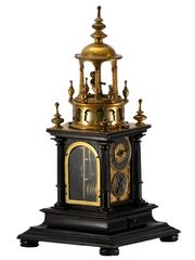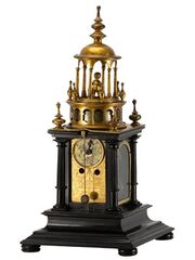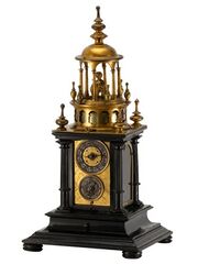 | 19:29, 23. Okt. 2025 | Jakob van Kress IVK, Augsburger Renaissance Türmchenuhr mit 24 Stunden-Zifferblatt, Stundenschlagwerk und Wecker ca. 1600 (11).jpg (Datei) | 286 KB | Andriessen | Jakob van Kress IVK, Augsburger Renaissance Türmchenuhr mit 24 Stunden-Zifferblatt, Stundenschlagwerk und Wecker ca. 1600. {{Bildrechte U|dem Auktionshaus Dr. H. Crott}} {{Kategorie Bildgalerie Uhrenmodelle Kress, Jacob van}} Gehäuse Eichenkorpus und Ebenholzfurnier · feuervergoldetes Messing · graviertes Dekor · zweiseitig verglast · durchbrochen gearbeiteter Glockenturm · 1 Hammer / 1 Glocke · Kurzpendel. Zifferblatt Vorderseite - Messing vergoldet, floral gravier… | 1 | |