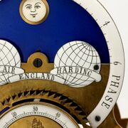 | 21:04, 16. Dez. 2025 | Sinclair Harding, Mr. Harrisons's Moon Phase Sea Clock ca. 2000 (02).jpg (Datei) | 200 KB | Andriessen (Diskussion | Beiträge) | Sinclair Harding, Mr. Harrisons's Moon Phase Sea Clock ca. 2000. {{Bildrechte U|Auktionshaus Dr. H. Crott}} {{Kategorie Bildgalerie Uhrenmodelle Sinclair Harding}} Mr. Harrisons's Moon Phase Sea Clock: Dekorative, englische Skelettuhr mit 8-Tage-Gangdauer, Mondphase und "Grasshopper"-Hemmung. Gehäuse Messing. Zifferblatt Emailziffernringe für Stunden und kleine Sekunde, handbemaltes Emailzifferblatt für Mondphase, Zirkone als Sterne, gebläute Zeiger. Werk Skelettierter, gebogener Messingrahme… | 1 | |