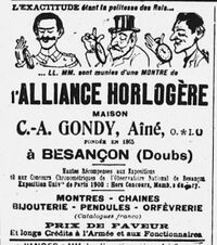 Claudius Gondy war in 1865 der Begründer der Juweliergeschäft und Uhrenfabrik C. A. Gondy ainé, in Besançon. Sein Vater war als Uhrmacher in La Chaux-de-Fonds tätig wo er den Uhrenbetrieb J. B. Gondy & Cie. leitete. Der Markenname "Alliance Horlogères" entstand durch die Zusammenarbeit von Vater und Sohn in La Chaux-de-Fonds und Besançon. Am 15. März 1885 wurde die Firma im Schweizer Firmenregister gelöscht und teilweise in die Firma C. A. Gondy ainé eingegliedert. Um 1822 wurde die Firma von E. Enginger übernommen.