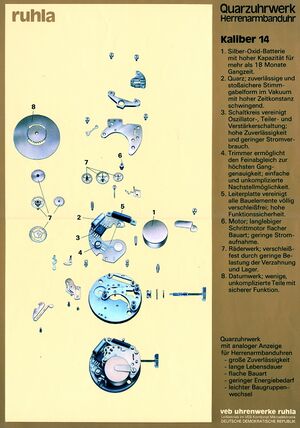 Das Kaliber UMF 14-33 ist ein Quarz-Armbanduhr-Werk der UMF Ruhla mit analoger Anzeige. Neben dem Kaliber UMF 14-33 (mit Datum) wurden 2 Varianten hergestellt. Kaliberbeschreibungohne Datumsscheibe Literatur