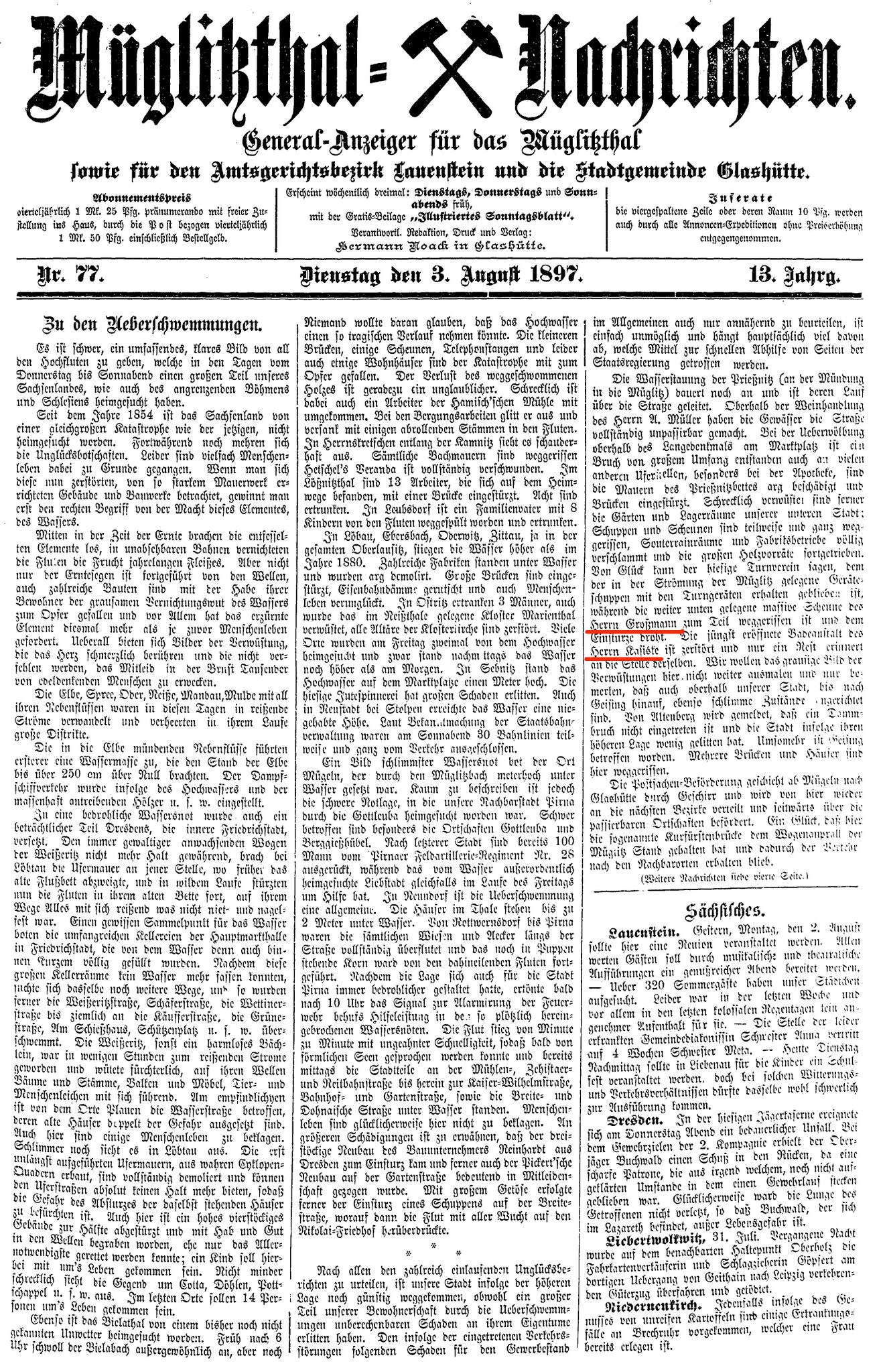 | aktuell | 20:01, 9. Okt. 2017 | 3.038 × 4.708 (7,95 MB) | StSeifert (Diskussion | Beiträge) | == Beschreibung == {{Bildinformationen |Beschreibung=Müglitztal-Nachrichten |Datum=03.08.1897 |Urheber= |Quelle=Stadtarchiv Glashütte |Anmerkungen= }} |
