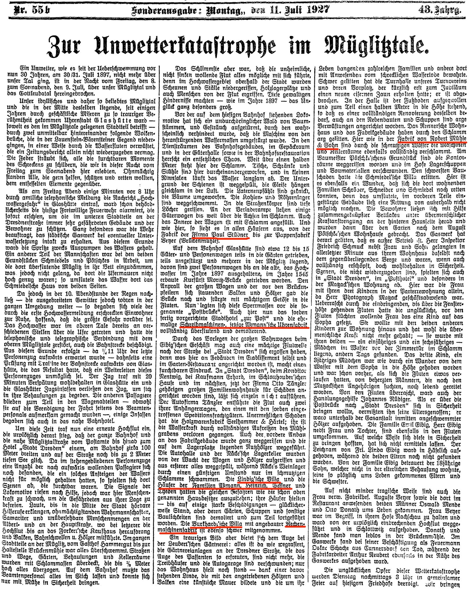 | aktuell | 20:29, 9. Okt. 2017 | 3.371 × 4.259 (9,17 MB) | StSeifert (Diskussion | Beiträge) | == Beschreibung == {{Bildinformationen |Beschreibung=Müglitztal-Nachrichten |Datum=11.07.1927 |Urheber= |Quelle=Stadtarchiv Glashütte |Anmerkungen= }} |