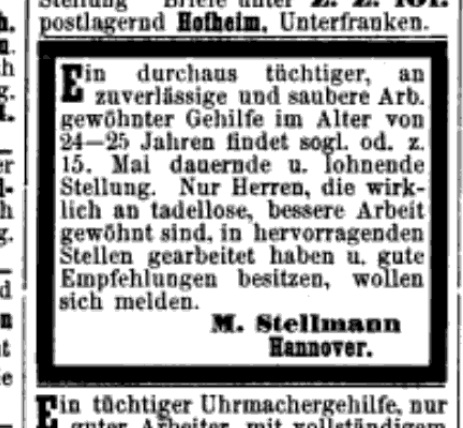 Datei:Deutsche Uhrmacherzeitung 1. May 1890 Anzeige Stellmann.jpg
