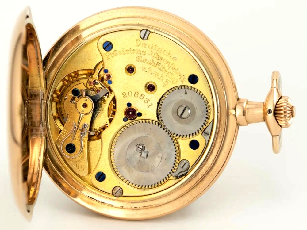 Fa. Albert Lescow, Deutsche Präzisions-Uhrenfabrik Glashütte (Sa.) eGmbH, No. 208531 ca. 1920.