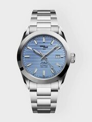 Glas: Kratzfestes Saphirglas mit Antireflexbeschichtung. Zifferblattfarbe: Stream – Leuchtmasse: Superluminova – Stunden, Minuten, Sekunden, Datum. Armband: Austauschbare Edelstahlarmbänder (316L) mit patentierter Faltschließe.