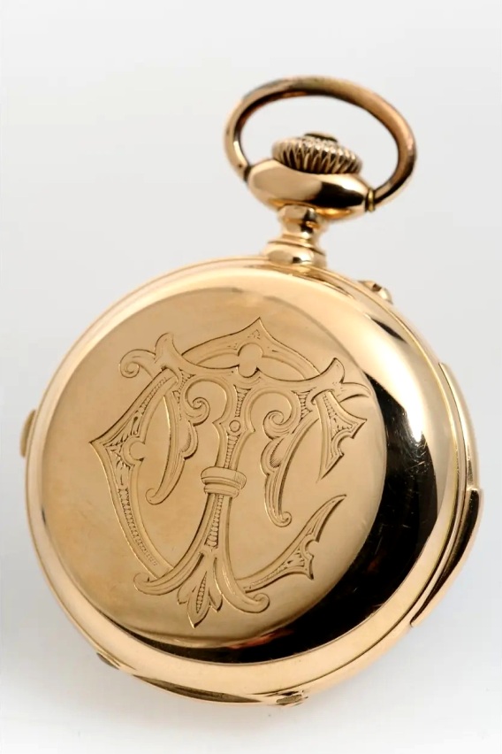 Schwere Savonnette mit Chronograph, Minutenrepetition, ewigem Kalender und Mondphase