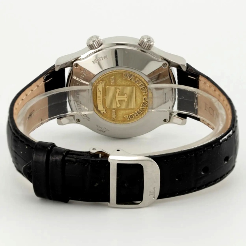 The Jaeger-LeCoultre Memovox Reveil reference 144.8.94 is an outstanding example of the brand’s expertise in mechanical alarm watches. This particular model is powered by the hand-wound Caliber 914. Its clean, classic design is complemented by a practical alarm function that evokes the sound of vintage mechanical alarm clocks. This feature remains unique in traditional watchmaking. The 36 mm stainless steel case exudes understated elegance, providing the perfect frame for the silver dial featuring arrow-shaped indices and Arabic numerals.