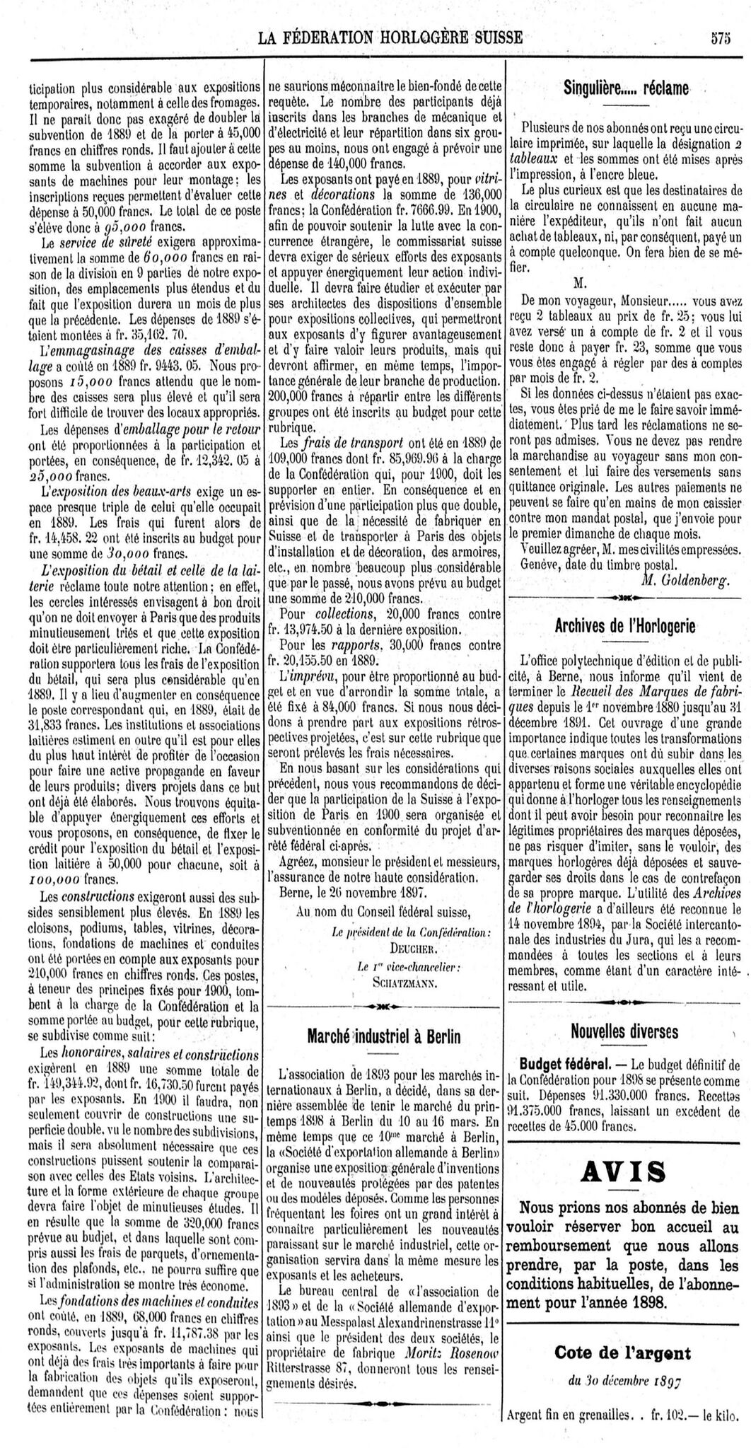 - Bildgalerie Archiv La Fédération Horlogère Suisse
