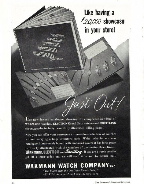 | aktuell | 14:26, 27. Apr. 2017 | 750 × 954 (199 KB) | Andriessen (Diskussion | Beiträge) | Wakmann Werbung Sepember 1949. {{Bildrechte U|The Jewellers Circular Keystone, Wakmann Watch Co.}} {{Kategorie Bildgalerie Archiv Wakmann Watch Co}} |
