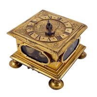 Michael Kratz was als Uhrmacher tätig in Augsburg und wurde 1616 geboren. Er signierte seine Uhren mit „M*K“. Leider ist sehr wenig über diesen Uhrmacher bekannt. Diese barocke Horizontaltischuhr ist mit den Initialen "M*K" signiert. Wahrscheinlich handelt es sich dabei um den Augsburger Uhrmacher Michael Kratz. Besonders eindrucksvoll sind die Gravuren auf dem horizontalen Zifferblatt: Die Eckzwickel sind mit Tulpen, Nelken und anderen Frühlingsblumen verziert. In der Mitte des Zifferblatts befindet sich eine kunstvoll ausgeführte Landschaftsszene mit einem Reiter und einem Wanderer, die sich einem Gehöft mit rauchendem Schornstein nähern. Im Hintergrund sind eine Kirche und ein Berg mit einem Kreuz zu sehen.