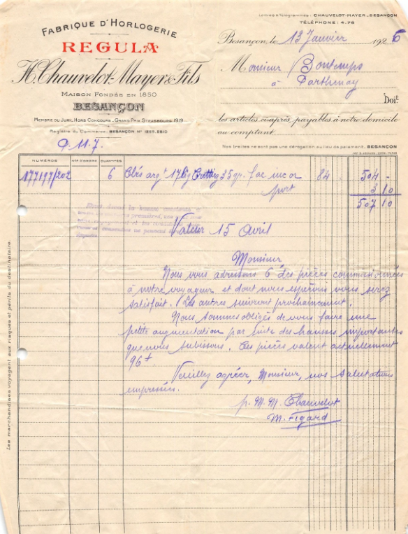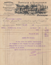 | 13:10, 20. Dez. 2025 | Rechnung H. Chauvelot-Mayer & Fils für Horlogerie Bontemps à Parthenay.jpg (Datei) | 513 KB | Andriessen (Diskussion | Beiträge) | Rechnung H. Chauvelot Mayer & Cie für Horlogerie - Bijouterie Malizard. ==Lizenz== E-Bay Uhrheber Unbekannt {{Kategorie Bildgalerie Archiv Malizard, Jean-François}} | 1 | |