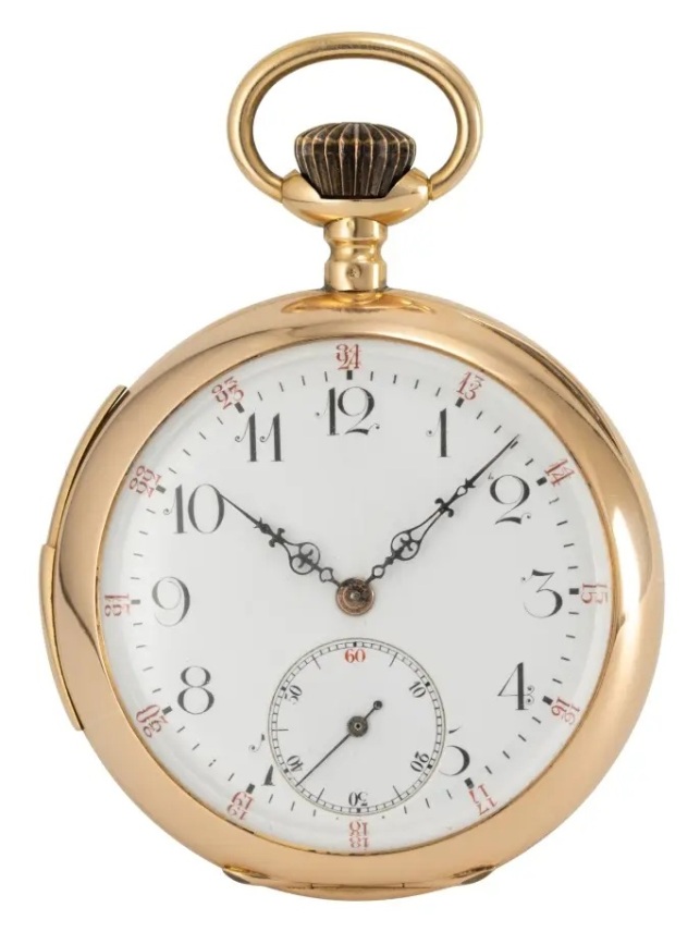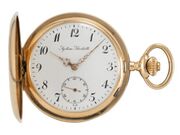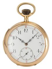 | 20:24, 1. Dez. 2025 | Charles Grottendieck, Dekorative, schwere Taschenuhr mit Minutenrepetition, ca. 1900 (1).jpg (Datei) | 87 KB | Andriessen | Charles Grottendieck, Dekorative, schwere Taschenuhr mit Minutenrepetition, ca. 1900 {{Bildrechte U|dem Auktionshaus Auktionen Dr. H. Crott}} {{Kategorie Bildgalerie Uhrenmodelle Grottendieck, Charles}} Gehäuse 18 kt Gold · graviertes Monogramm. Geh.-Nr. 1630 Zifferblatt Email, rote 24h-Anzeige. Brückenwerk, 2 Hämmer / 2 Tonfedern, Ankerhemmung, Schrauben-Komp.-Unruh. An ornamental, heavy minute repeating pocket watch. Case 18 K gold · engraved monogram. Case no. 1630. Dial Enamel, red 2… | 1 | |