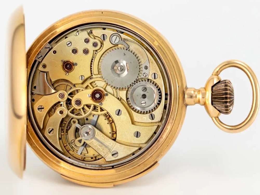 | 20:25, 1. Dez. 2025 | Charles Grottendieck, Dekorative, schwere Taschenuhr mit Minutenrepetition, ca. 1900 (2).jpg (Datei) | 99 KB | Andriessen | Charles Grottendieck, Dekorative, schwere Taschenuhr mit Minutenrepetition, ca. 1900 {{Bildrechte U|dem Auktionshaus Auktionen Dr. H. Crott}} {{Kategorie Bildgalerie Uhrenmodelle Grottendieck, Charles}} Gehäuse 18 kt Gold · graviertes Monogramm. Geh.-Nr. 1630 Zifferblatt Email, rote 24h-Anzeige. Brückenwerk, 2 Hämmer / 2 Tonfedern, Ankerhemmung, Schrauben-Komp.-Unruh. An ornamental, heavy minute repeating pocket watch. Case 18 K gold · engraved monogram. Case no. 1630. Dial Enamel, red 2… | 1 | |