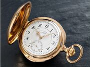 | 21:50, 29. Nov. 2025 | E. Senn Bale, System Glashütte Goldtaschenuhr ca. 1900 (3).jpg (Datei) | 121 KB | Andriessen | E. Senn Bale, System Glashütte Goldtaschenuhr ca. 1900 {{Bildrechte U|dem Auktionshaus Auktionen Dr. H. Crott}} {{Kategorie Bildgalerie Uhrenmodelle Senn, Emil}} Gehäuse 18 kt Gold · graviertes Monogramm · Geh.-Nr. 35617. Email Zifferblatt. 4/5-Platinenwerk, Ankerhemmung, Schrauben-Komp.-Unruh. 18 K gold case · engraved monogram · Case no. 35617 Enamel dial. Very good, hairlines, slightly chipped. Movement 4/5 plate movement, lever escapement, screw compensation balance. | 1 | |