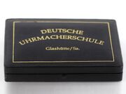 | 11:10, 9. Nov. 2025 | DUS Alfred Dreyse No. 1495 1902-1904 (05).jpg (Datei) | 114 KB | Andriessen | Alfred Dreyse, Santiago Chile, Deutsche Uhrmacherschule Glashütte i/SA, Werk Nr. 1495, 55 mm, 133 gr., circa 1904 {{Bildrechte U|dem Auktionshaus Auktionen Dr. H. Crott}} Seltene, feine Schuluhr - gefertigt an der deutschen Uhrmacherschule Glashütte mit Kopie des Abgangszeugnisses Geh.: Silber, glatt, Silbercuvette. Ziffbl.: Email, arab. Zahlen, eingesetzte kleine Sekunde, signiert, gebläute Spade-Zeiger. Werk: 3/4-Platinenwerk, gekörnt, vergoldet, signiert, verschraubte Goldchatons, p… | 1 | |
